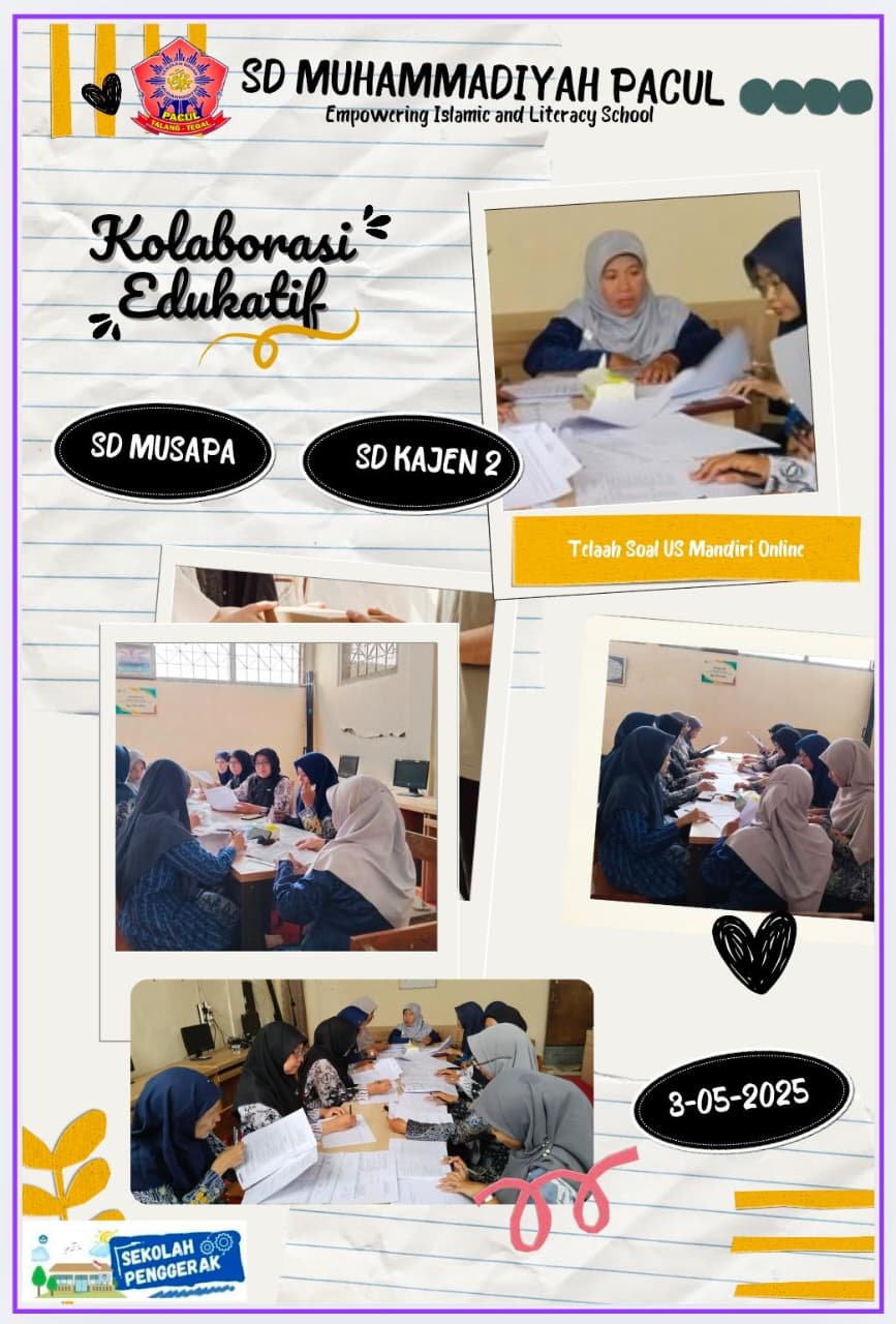Terasa ringan jika ada sinergi, merengkuh asa, mencipta kolaborasi edukatif dalam pembuatan Soal Ujian Sekolah Mandiri Online tahun pelajaran 2024/2025 antara SD Muhammadiyah Pacul Talangdan SD negeri Kajen 2 Talang pada hari Sabtu, 3 Mei 2025. Ini juga sebagai giat SD MUSAPA dalam memperingati dan memaknai Hari Pendidikan Nasional.