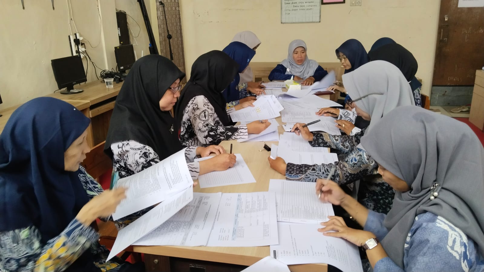 Setelah sesi diskusi, kegiatan dilanjutkan dengan kerja kolaboratif dalam menyusun naskah soal Ujian Sekolah tahun 2025. Guru-guru dari kedua sekolah berdiskusi aktif dalam merumuskan soal-soal berbasis HOTS (Higher Order Thinking Skills) dan sesuai dengan kurikulum serta karakteristik peserta didik.
